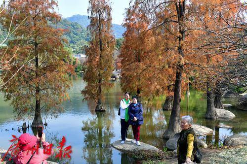 落羽杉在青山绿水的掩映下,格外惹眼。