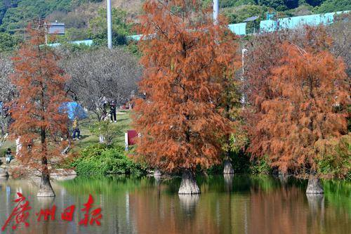萝岗香雪公园的梅花陆续绽放,预计再过一周进入盛花期,吸引了不少市民游客前来观赏。除了梅花,萝岗香雪公园的落羽杉也悄然变红了,环湖畔的落羽杉红了颜色,在青山绿水的掩映下,格外惹眼。