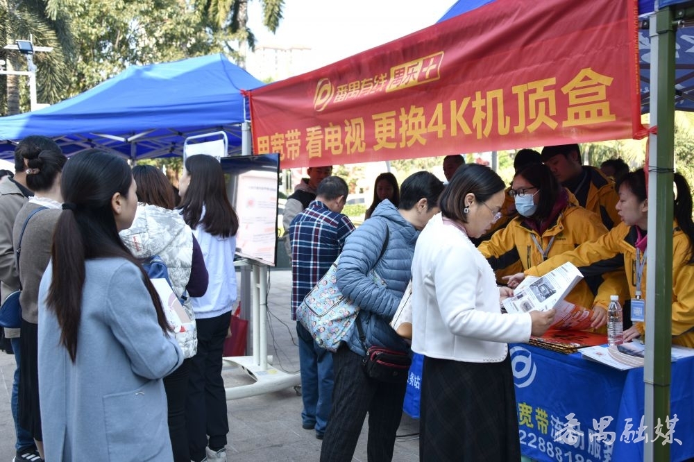 聚焦居民群众的健康需求和生活需求,现场同步设置健康义诊、写“福”字送春联、番禺有线“电视+宽带”流动服务站等多个摊位,为居民提供贴心服务。