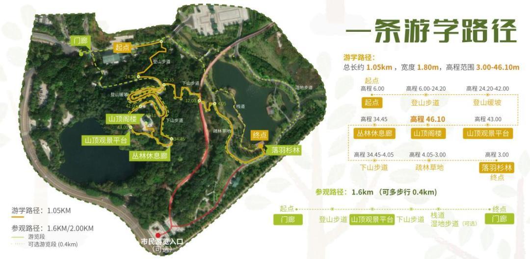 1公里自然教育径,打造自然课堂。本次改造充分利用现有的林间步道,通过彩绘步道、加装科普教育标识牌等方式,让保护植物进公园、新优品种进公园,如银叶树、大果紫檀、玉蕊等科研成果植物,重点打造了一条佛山特色植物自然教育径。