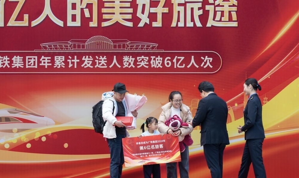 12月28日9时31分,随着载有630余名旅客的G566次列车从广州南站正点发出,一路驶向青岛,广铁集团2024年累计发送旅客突破6亿人次。广州南站地处粤港澳大湾区客流量最大的铁路交通枢纽,2024年累计到发旅客超1.7亿人次,日均到发近47万人次。今年以来,广州南站大力提升客运服务品质,让旅客出行体验更美好。
