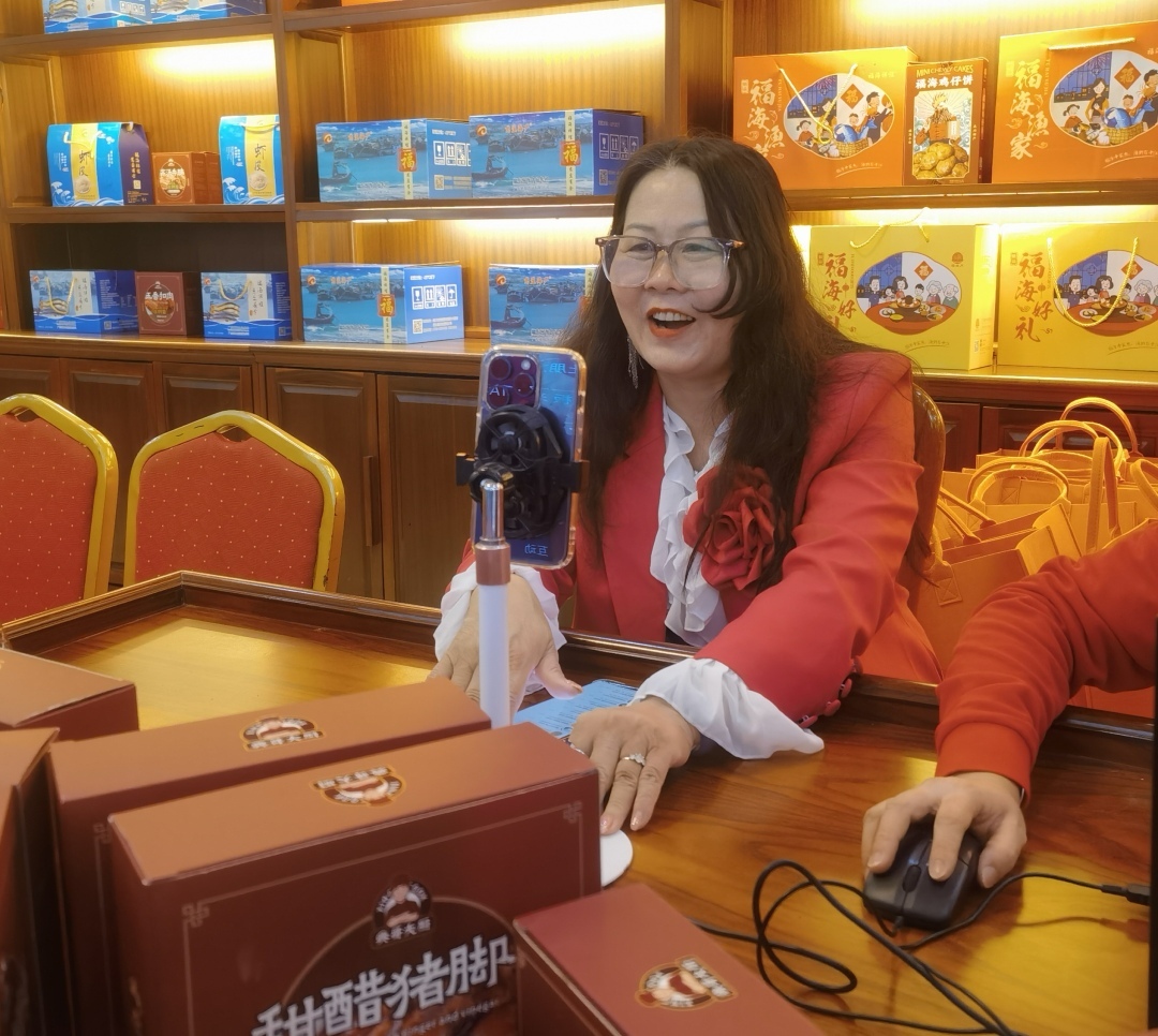 被当地人尊称为虹姐的福海饼业总经理欧彩虹在“直播带货”