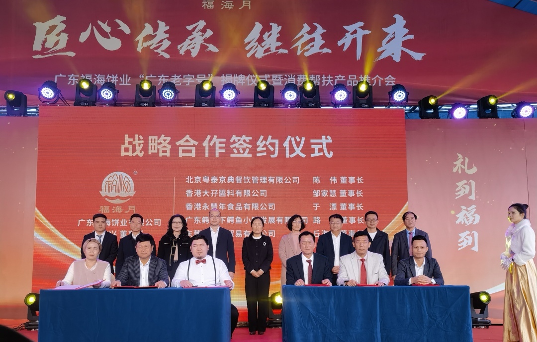 当日的活动现场醒狮欢腾,锣鼓喧天,腊味、年糕、月饼、五仁鸡仔饼等美食产品琳琅满目。福海饼业分别与北京粤泰京典餐饮管理有限公司、香港大孖醬料有限公司、香港永豐年食品有限公司、广东鳄天下鳄鱼小镇发展有限公司、东莞市雄生贸易有限公司签订了战略合作协议。