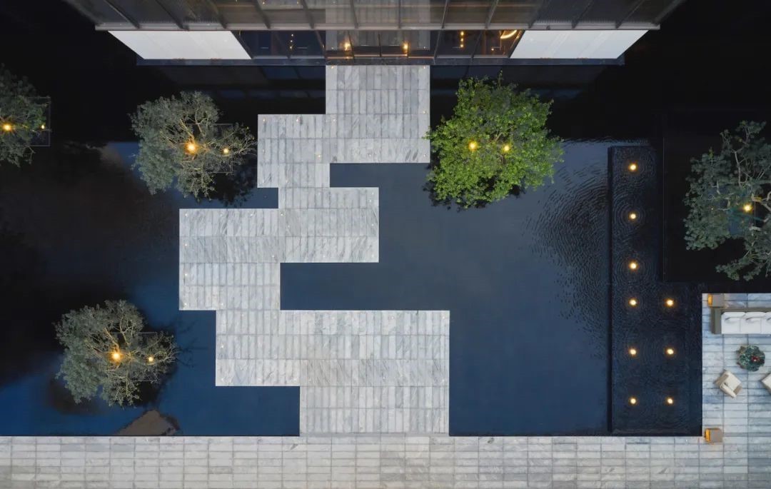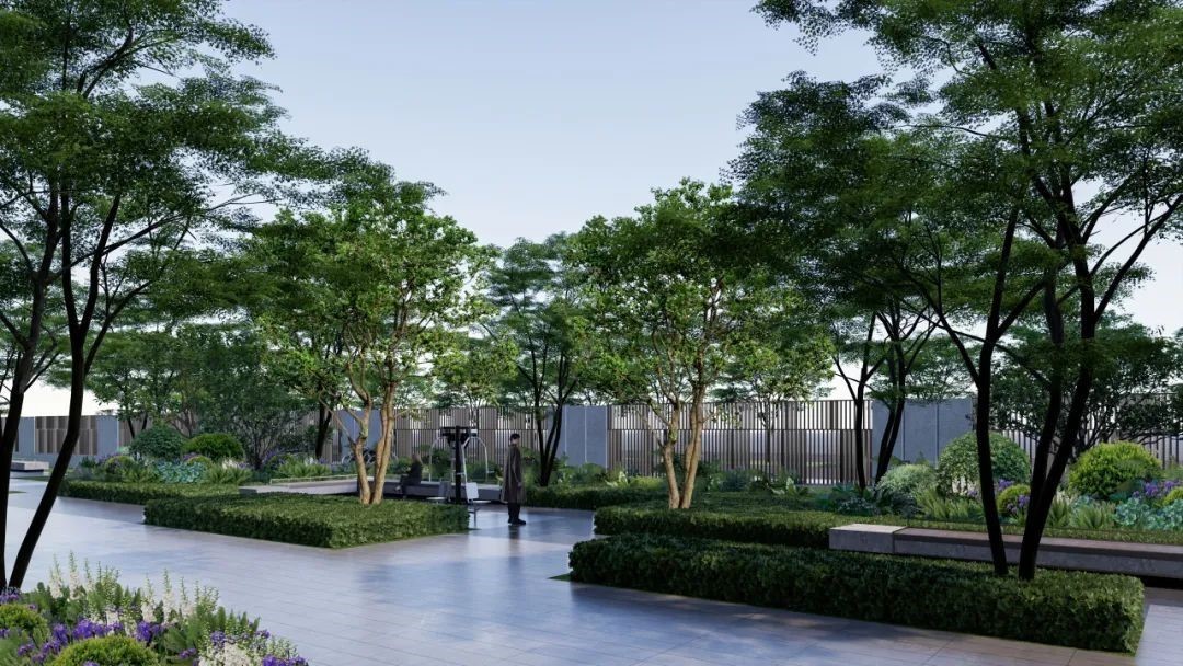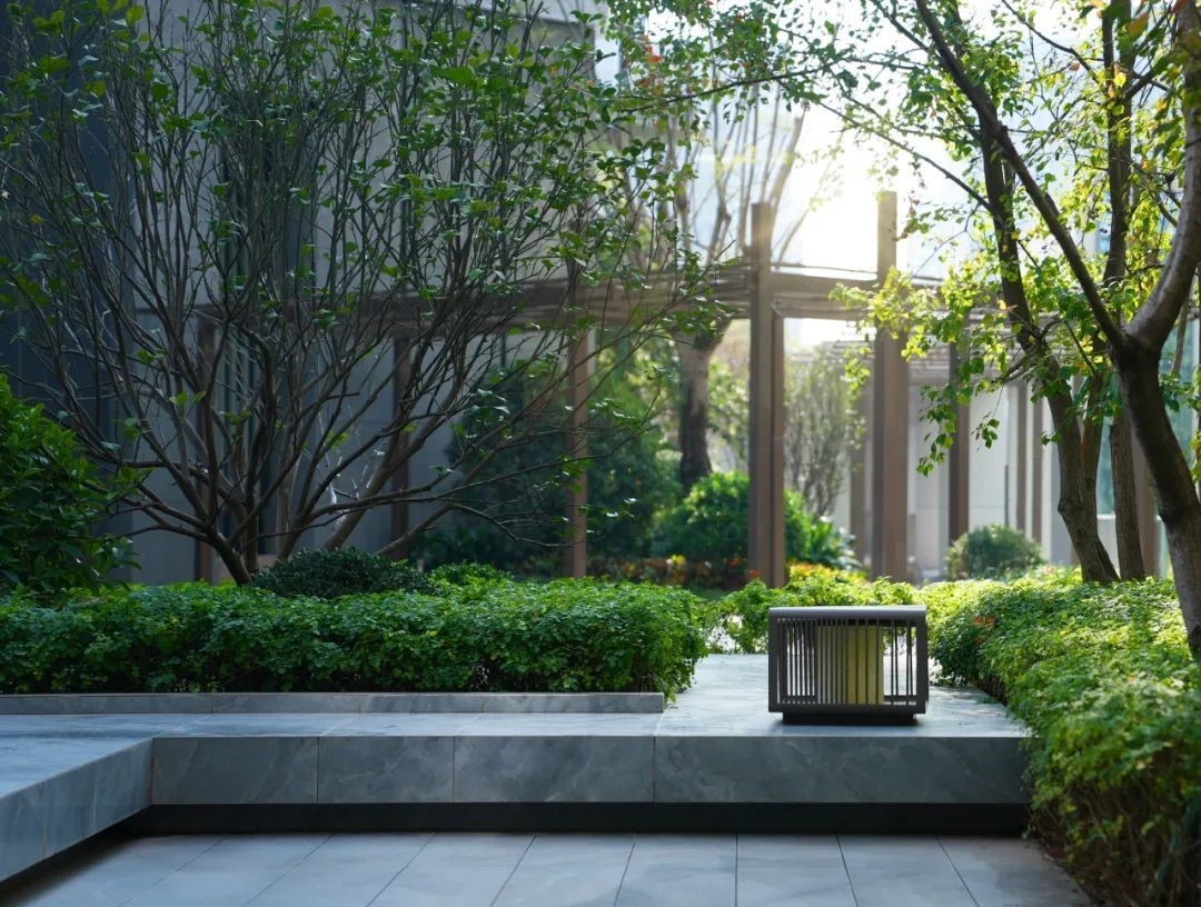 为了打造高品质森居园林,甄选各式树种和园区植被、花风铃木、细叶榄仁、丛生香樟、凤凰木、锦叶榄仁等植物高低错落,利用叠水等手法,组织形成池水等,不同层次的水景感受,呈现一年四季丰富的景致变化。同时构建了一个愉悦平静的过渡空间,营造楼栋的私属感与精致感,自然之美于建筑、景观、艺术在此和谐共生。