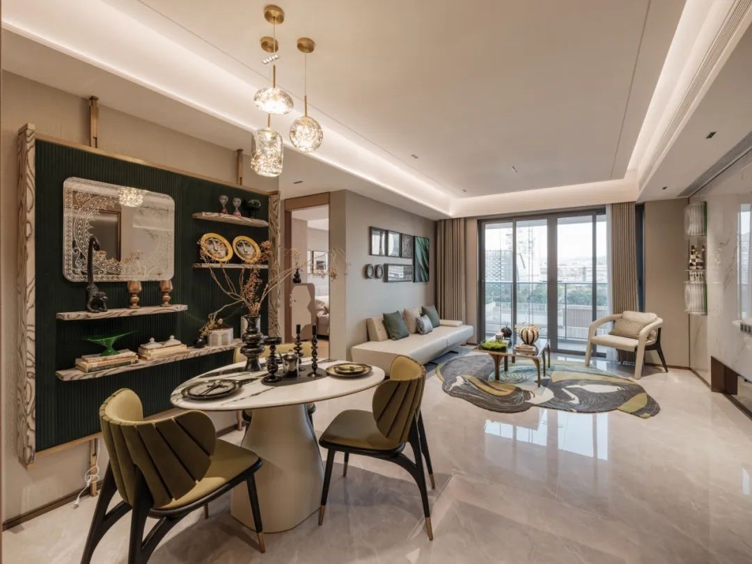 约3.1米层高设计,打造私属的宽境生活尺度。视觉延伸之处空间层次分明。配备大落地窗,采光与视野佳,将白云新城CBD山景、城景、园景的四季美景收入眼底,明媚阳光、徐徐清风不请自来。
