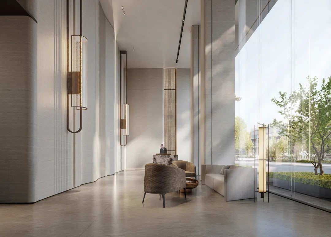 归家大堂是未来每位业主进入建筑时的第一印象,也是高品质住宅向城市递出的第一张“名片”。