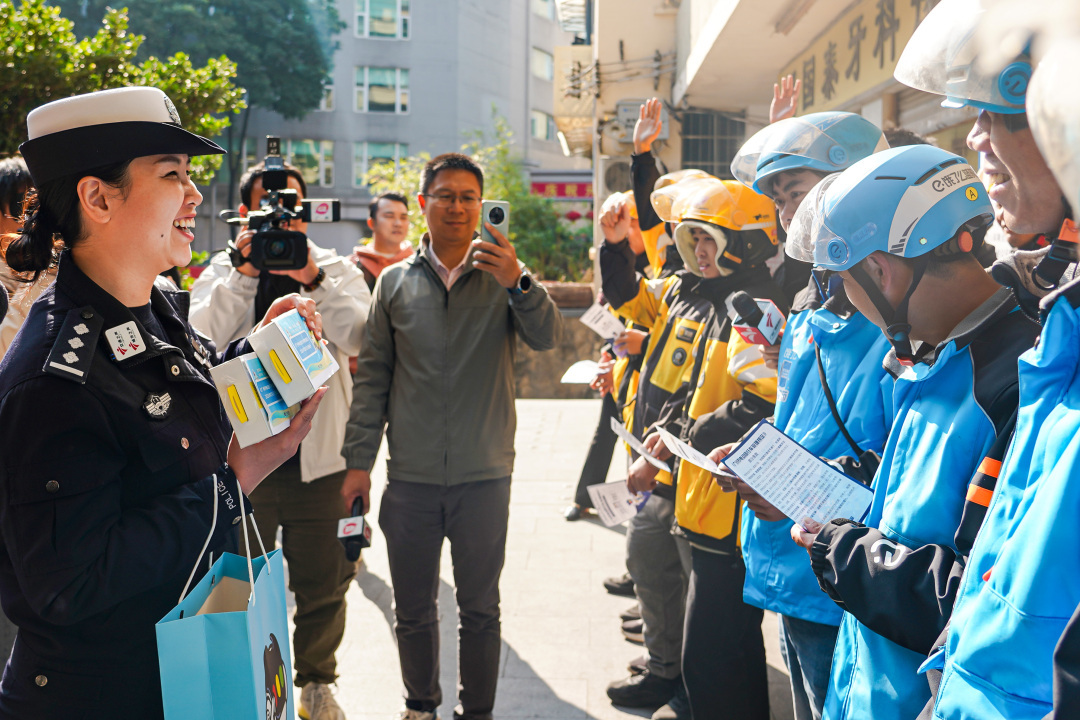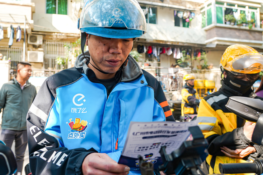 “大家骑行时可不可以用手机联系客户,或者边骑边吃早餐?”……12月31日上午,广州交警走进越秀区一骑手驿站,以“问答+派发宣传单”的形式,面对面普及《广州市电动自行车管理规定》内容,为网约配送人员“划重点”。