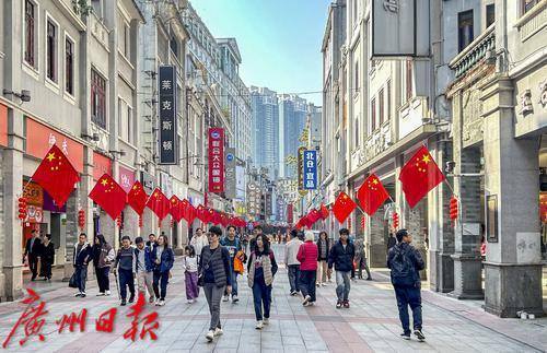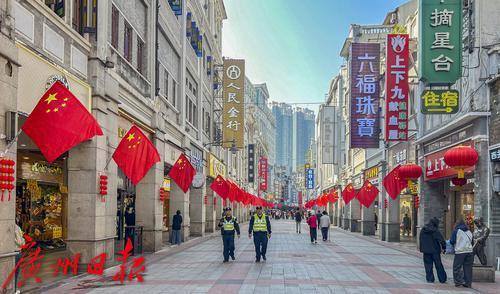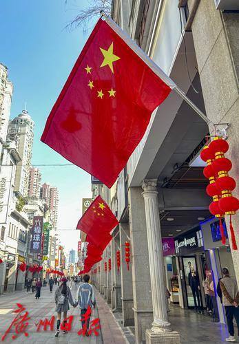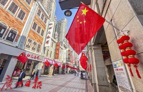 上下九步行街挂满国旗喜欢迎元旦。