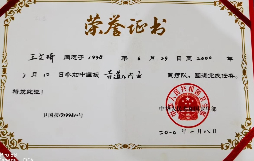 1998年6月,中国第19批援赤道几内亚医疗队启程,王文琦也在其中,成为巴塔点长,在赤道几内亚工作了整整两年,那里艰难的生活条件,繁重的医疗工作,使他刻骨铭心,始终难以忘怀。