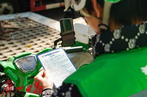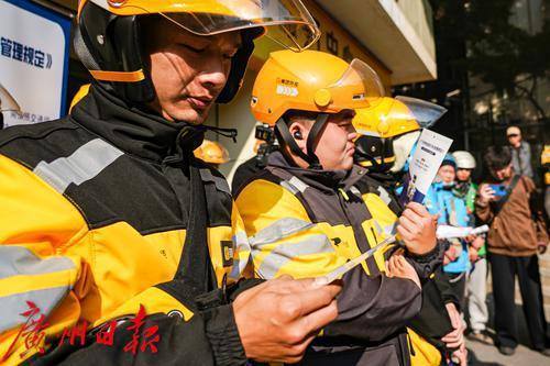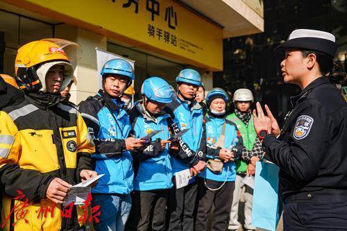 2024年12月31日上午,广州交警走进越秀区一骑手驿站,以“问答+派发宣传单”的形式,面对面普及《广州市电动自行车管理规定》内容,为网约配送人员“划重点”。对高度依赖电动自行车的网约配送人员而言,12月30日落地实施的《广州市电动自行车管理规定》与其息息相关。在本次宣传中,广州交警在驿站门外用宣传牌列举了本次新规中的重点规定,并向外卖骑手们派发传单、进行有奖问答,以此对网约配送人员和企业加强宣传,让骑手在送餐路上能够兼顾效率与安全。