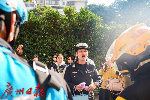 交警向外卖骑手答疑。