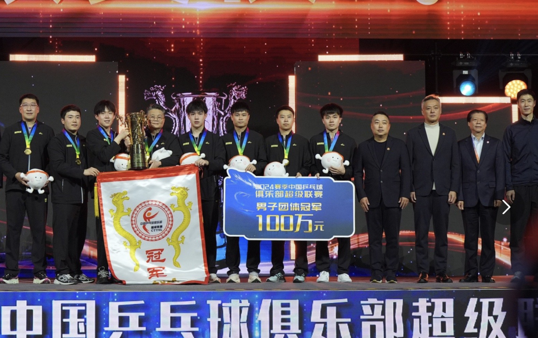 2024赛季中国乒乓球俱乐部超级联赛男团决赛2025年1月1日晚上在上海体育馆举行,由王楚钦领衔的山东魏桥俱乐部对阵林诗栋坐镇的黄石基地俱乐部。山东魏桥笑到最后,直落三盘获胜,其中,男子世界排名第一的王楚钦在第二盘男单比赛以3比2力克世界排名第二的林诗栋,拿下关键的1分,乒超男团冠军也是王楚钦在2025年夺得的首冠。林诗栋获颁单打MVP,林高远获颁双打MVP。