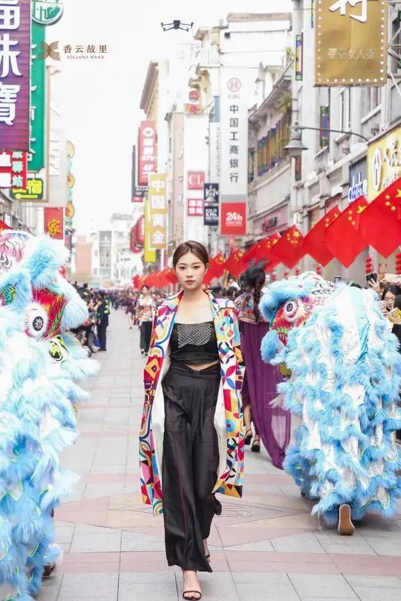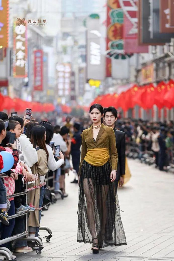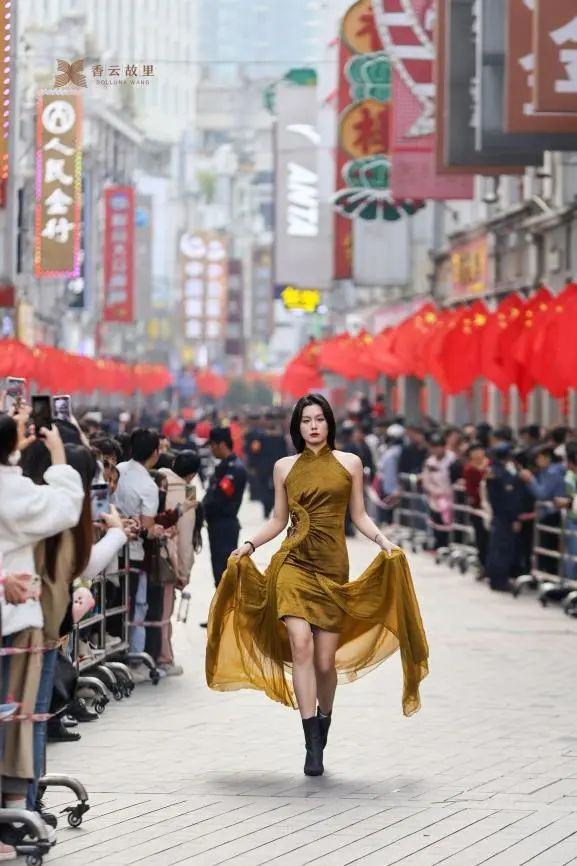 一直以来,荔湾区华林街道坚持在保护非遗的同时,探寻传统文化与现代融合的新路径。为了让非遗走进市民群众的身边,本次活动以“非遗+”为理念,将上下九步行街打造为T台秀场,融入舞狮等传统文化元素,配合展示50套非遗香云纱原创服饰,将传统文化、非遗技艺巧妙地与前沿设计、时尚审美相结合,全方位、多层次地展示传统东方美学与现代都市街景的完美相融。50位模特为广轻工职业技术大学在校学生,青春、活力、美好的大学生带来的街头时尚快闪给上下九注入新的活力,吸引了游客驻足观看拍照,营造出浓厚的喜庆氛围。