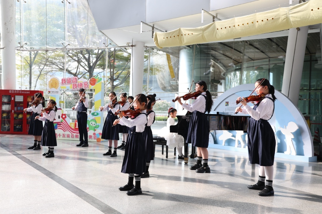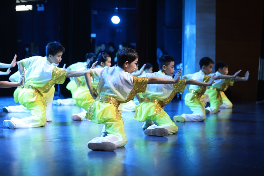 在老师的指引下,合唱团孩子们尝试弹奏民族乐器,感受琴弦里飘出的悠扬音符,在南拳、太极拳、九节鞭、三节棍的一招一式中体会中华武术内外兼修的魅力。