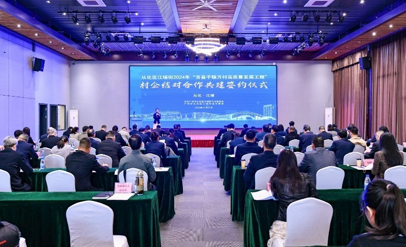 2024年12月27日上午,广州市从化区江埔街2024年“百县千镇万村高质量发展工程”村企结对合作共建签约仪式在从化荔博园举行。江埔街21条行政村与广州市工业和信息化局、广州市政务服务和数据管理局、广州工控集团及其30家下属企业“双向奔赴”,携手奋力推进“百千万工程”,为乡村振兴蓄势添能。