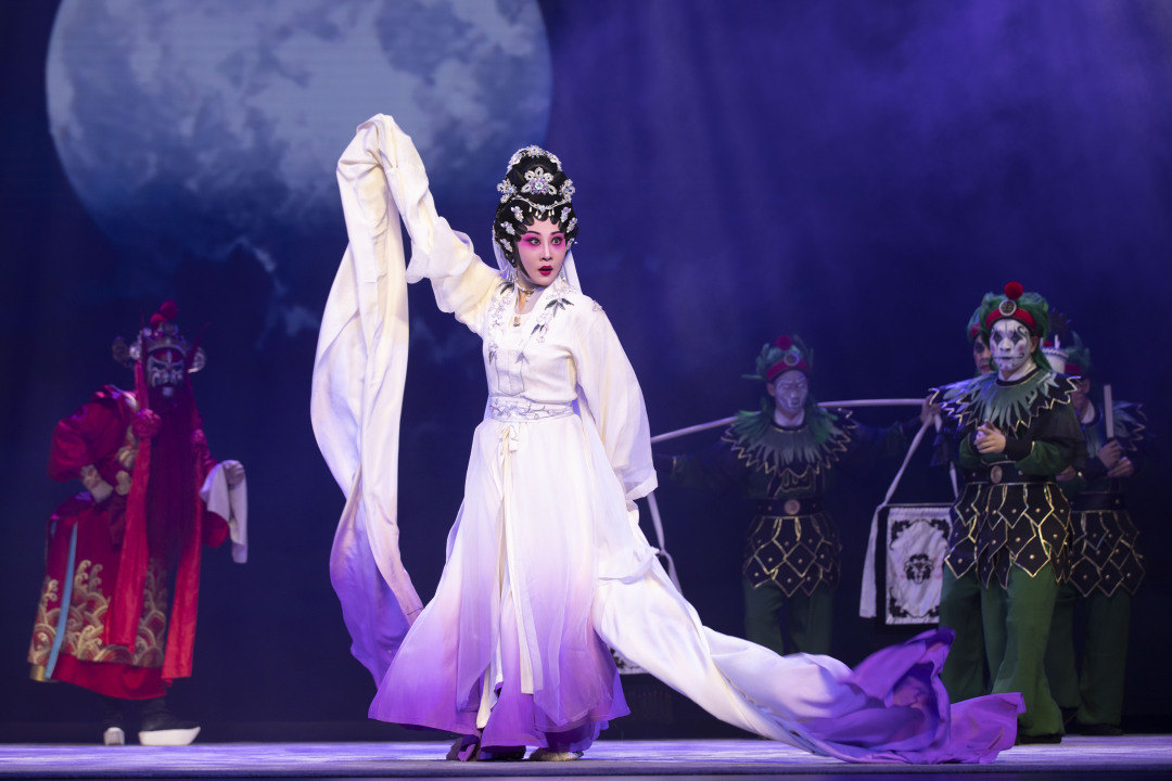 粤剧青年艺术家吴非凡、李嘉宜、陈振江与莫燕云演绎了《山乡风云》之“对月抒怀”、《焚香记》之“行路”、《刁蛮公主戆驸马》之“三步一拜入洞房”。