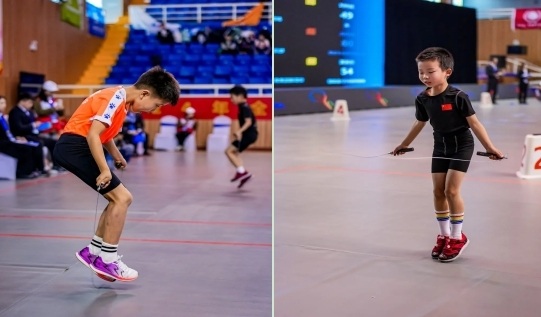 在段位赛中,首次登台国家级赛场的绳童们虽然年纪尚小,却展现出了顽强拼搏的劲头,令人动容。而在全国跳绳联赛总决赛同步花样、交互绳花样比赛中,选手们的动作愈发矫健,体操、力量、放接绳、绳舞等元素频繁切换,跳绳在他们身侧快速旋转,光影交错,演绎出一场又一场力与美的视觉狂欢。