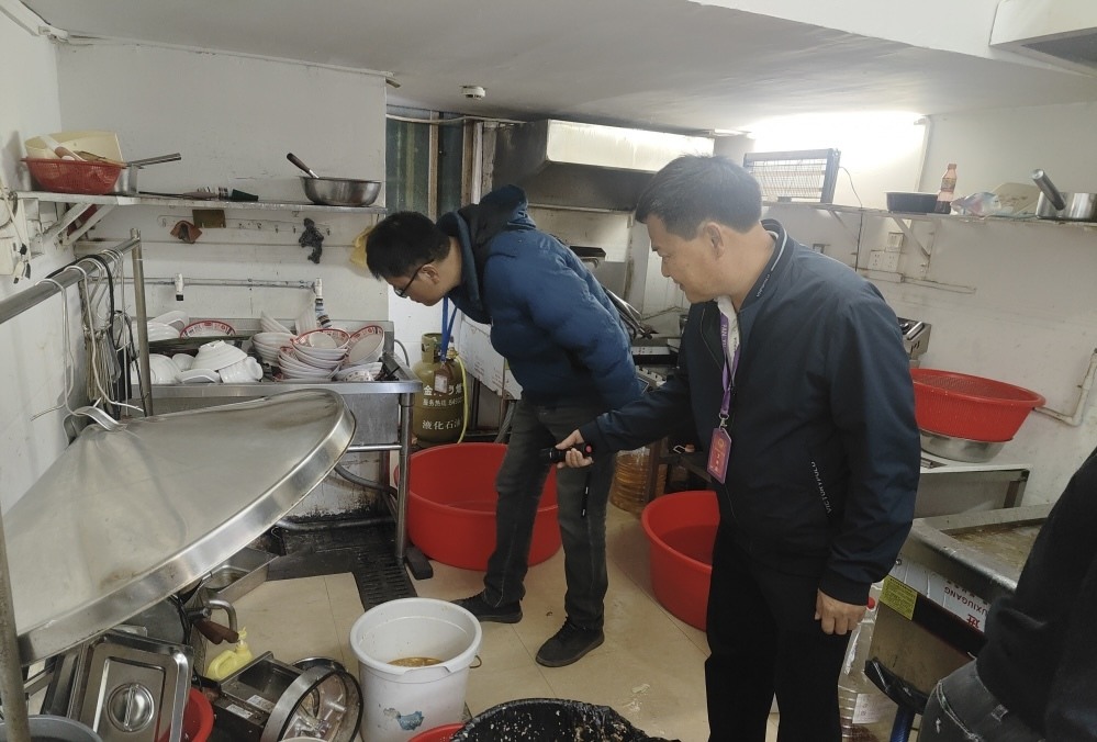 当晚现场发现部分餐饮企业存在内部洗手池未按要求安装或未正确使用油水分离器预处理设施、未办理城镇污水排入排水管网许可证,部分临街经营流动摊档涉嫌存在乱排餐厨废水至雨水篦子行为。检查人员现场已对问题责任单位及个人进行教育,下发告知书,指引其规范落实整改措施,彻底消除污染源,并交由洛浦街相关部门跟进。