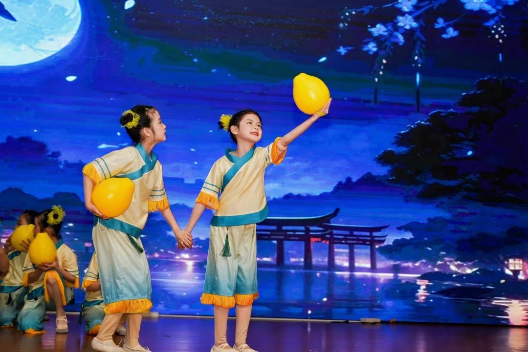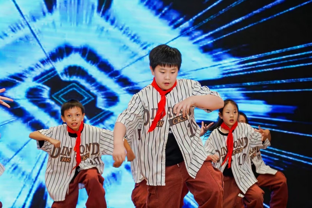 随后,宝实教育集团各校带来了精彩纷呈的节目,有宝实合唱团曲调悠扬的《映山红》、晓园小学充满活力与朝气的舞蹈《阳光舞者》、培红小学弘扬爱国情怀的朗诵《何以华夏何以中国》等节目,宝实街舞队的《HipHop's Soul》和宝玉直实验星悦小学街舞队的《快乐崇拜》把气氛推向高潮。