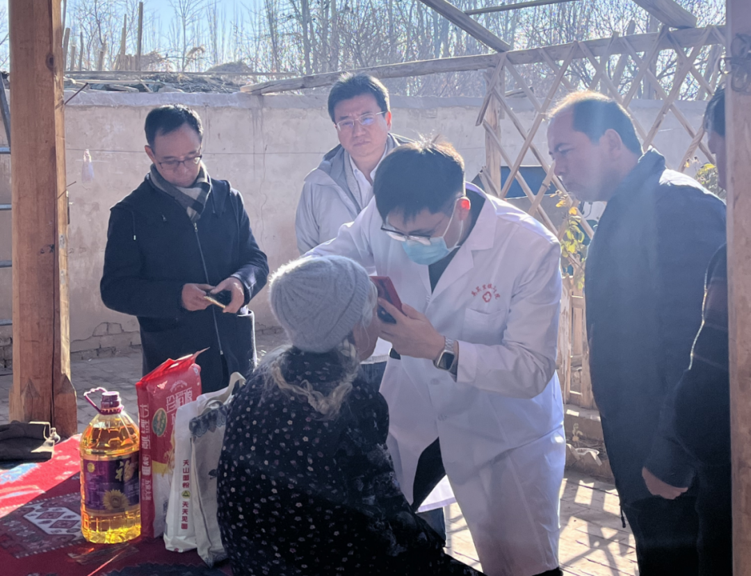 “我的世界已经暗沉了很多年,你们一进门,我感觉眼睛都亮了!心里的希望也是一种光啊。”多年卧床、伴随视力衰退的大爷买买提江(化名)拉着喀什地区第一人民医院眼科阿布医生的手说道。