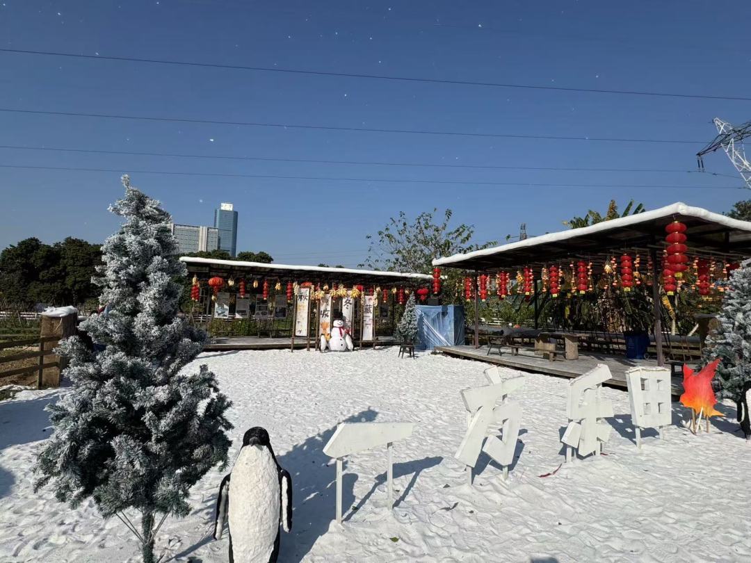 在广州也能体验“雪乡”风情,而且还是冰冷的“真雪”?没错,1月3日下午,记者在位于海珠区南洲北路的“一方乐田”都市农园就体验了一把。