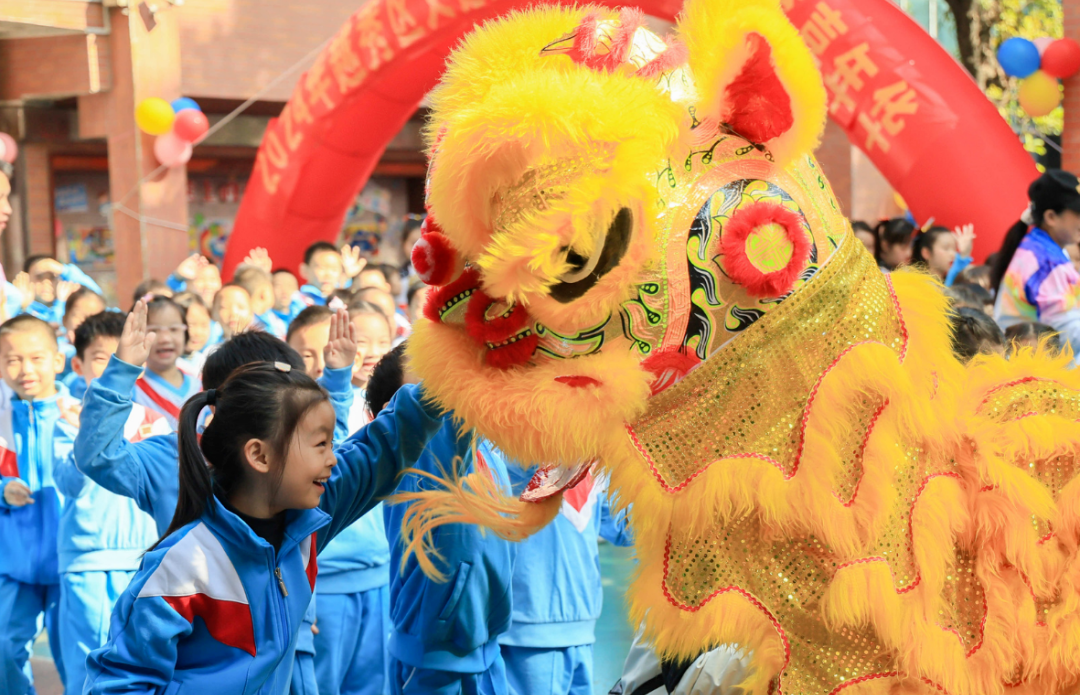 醒狮表演在迎新活动中必不可少,这次的醒狮表演,文德路小学邀请了来自广州体育学院的龙狮队担任表演嘉宾,为全校师生带来了喜庆热闹的醒狮表演。
