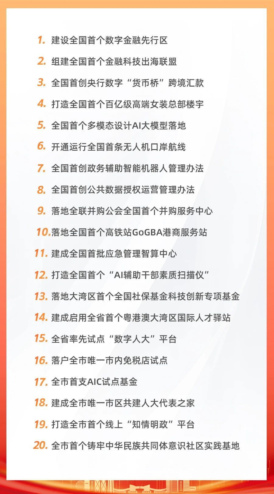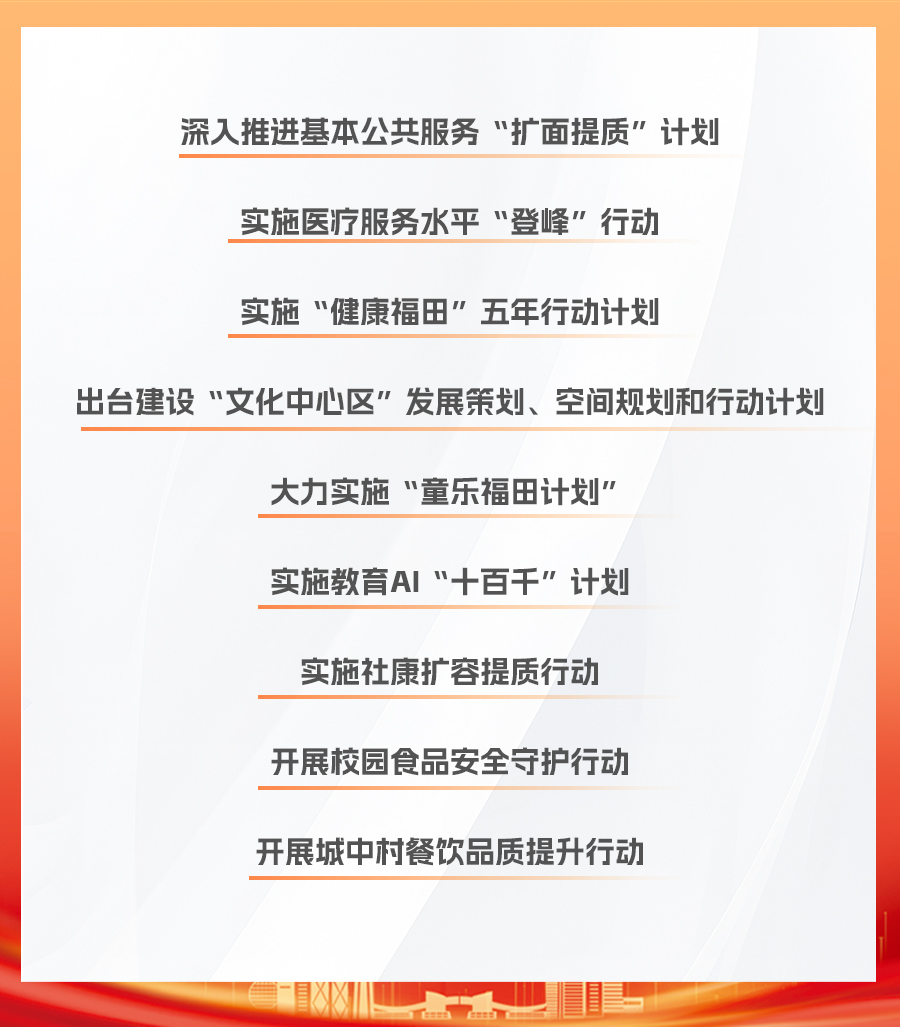 以更实举措建设“韧性健康城区”。实施医疗服务水平“登峰”行动,创建更多国家级、省级医学专科。实施社康扩容提质行动,社康诊疗量占比提高至60%以上。打造健康消费核心区,支持引导外商独资医院落地,积极引进头部医疗企业。打造AI智慧医疗高地,落地一批“医疗+AI”示范应用场景。