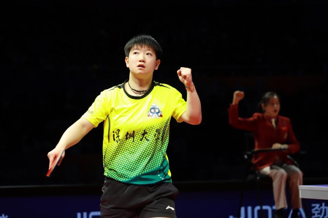 比赛因此进入到了扣人心弦的决胜盘。面对世界第二的王曼昱,深大俱乐部小将覃予萱毫不畏惧。在1比2落后的情况下,她顶住压力扳平了比分。虽然在决胜局里以7比11不敌对手,但能在紧要关头面对世界顶级选手而毫不手软,覃予萱的表现也赢得了观众的一致喝彩,彰显了“初生牛犊不怕虎”的风采。