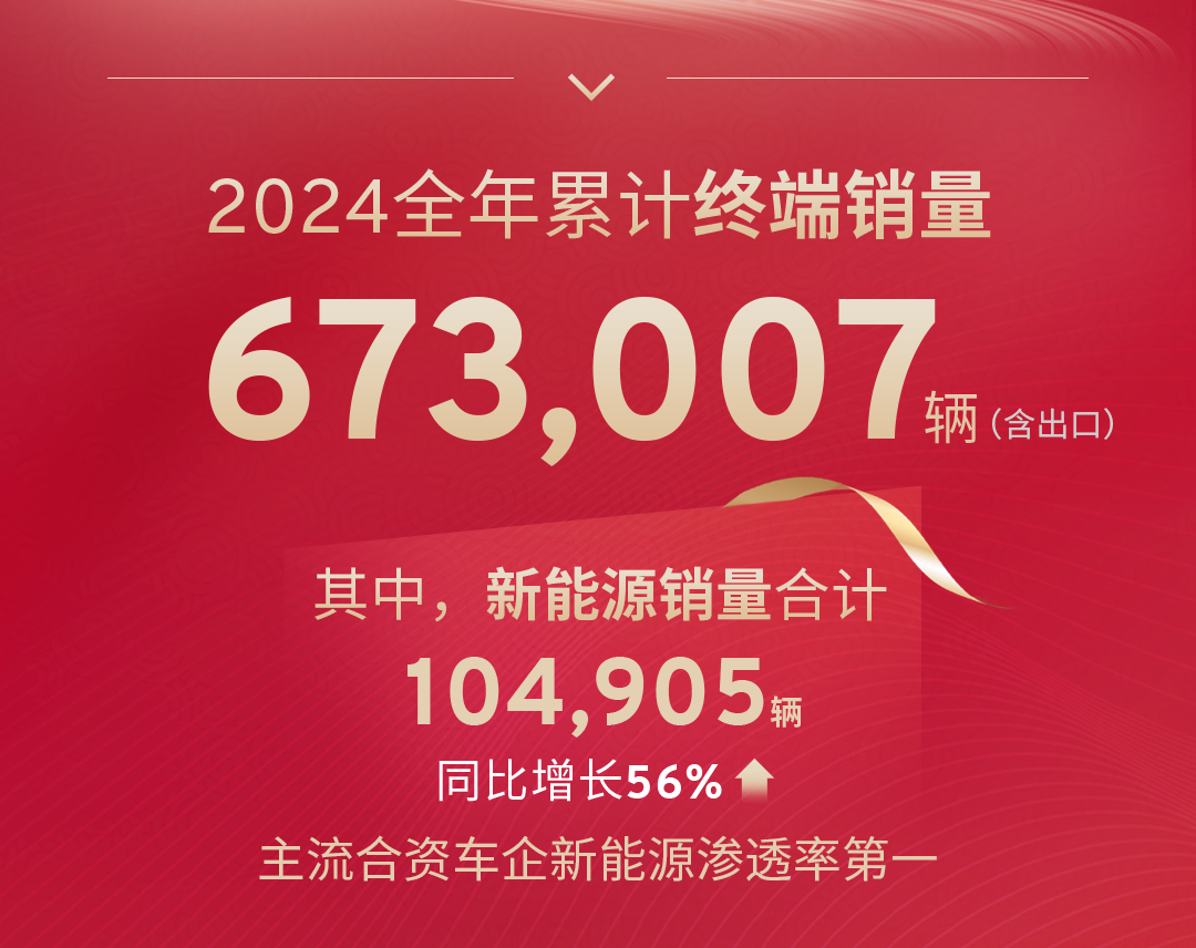“向好”揭示了上汽通用2024年业绩的含金量,这是有数据支撑的。2024年,包括出口在内,上汽通用累计终端销量达到67.3万辆,月销实现环比6连涨。其中,新能源车型全年销量合计接近10.5万辆,同比增长56%,在主流合资车企中新能源渗透率第一;别克GL8家族累计终端销售突破10万辆,持续蝉联大型MPV销量冠军。