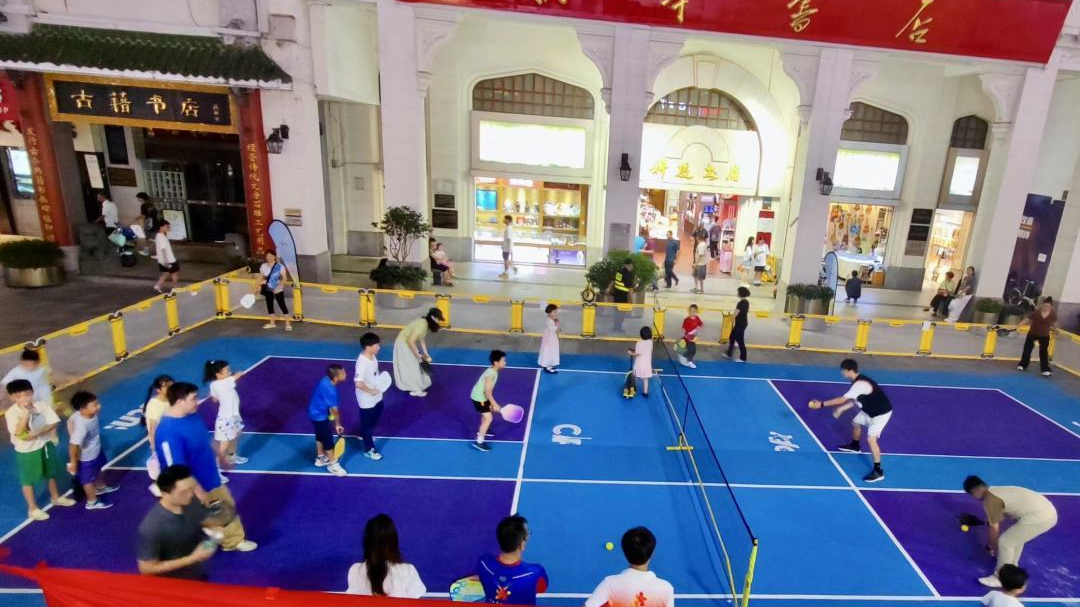 去年7月,为期一周的“广东省第八届大湾区青少年体育嘉年华暨2024年北京路步行街体育文化艺术节”发出了“北京路步行街匹克球召集令”,广州市匹克球协会组织青少年部演示并提供场地、器材及教练指导,让大众在富有广府文化韵味的北京路步行街上体验匹克球运动,成为一道亮丽的风景线。而去年,广州体彩举办了多站“中国体育彩票全国统一发行30年主题活动”,进景区、进街区、进商圈,活动中匹克球运动体验都是卖点,期待将新兴项目带来的“流量”转换为经济的“增量”,可以说,新潮好玩且完全没有参与障碍的匹克球已经成为“体育赛事活动三进”的“宠儿”。