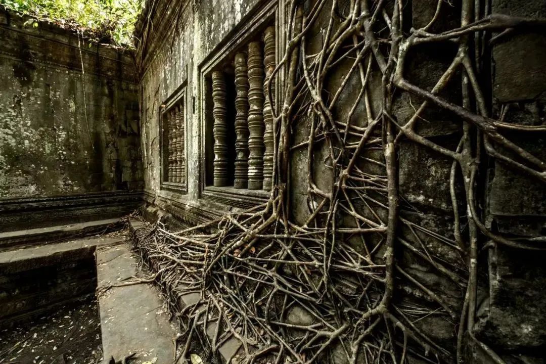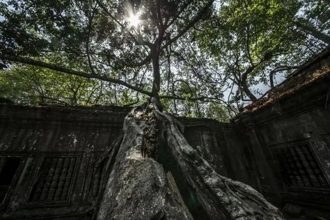 建筑顶端、基底和夹缝中生长着许多参天古树,百年老树缠绕着千年奇石蔚为奇观,这里也是电影《古墓丽影》取景地。