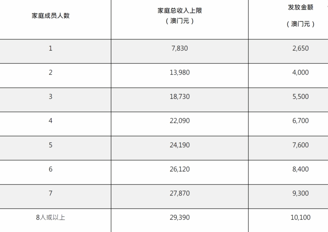 2025年「社會融和計劃」家庭總收入上限及發放金額