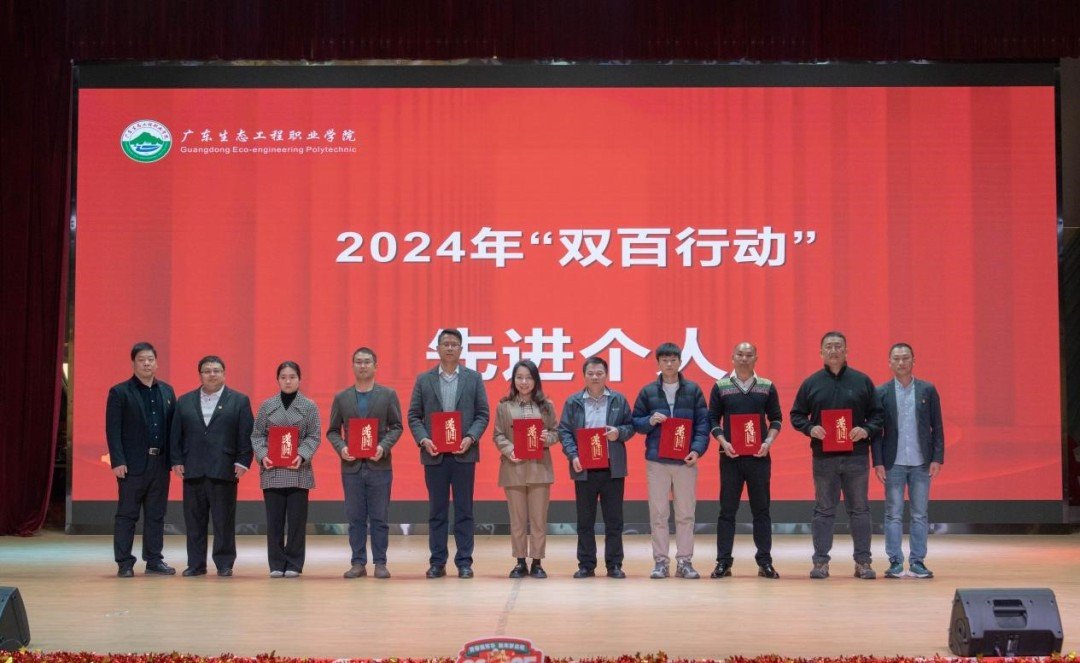 近日,广东生态工程职业学院2024年“双百行动”工作总结暨表彰大会在学校礼堂举行。