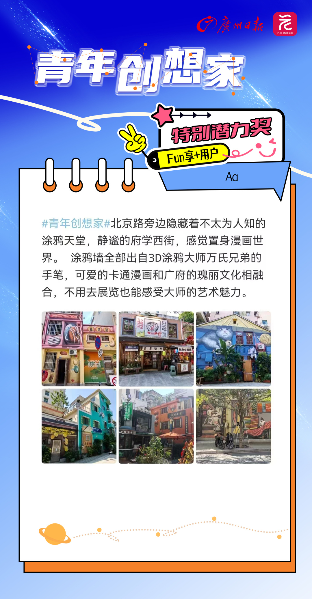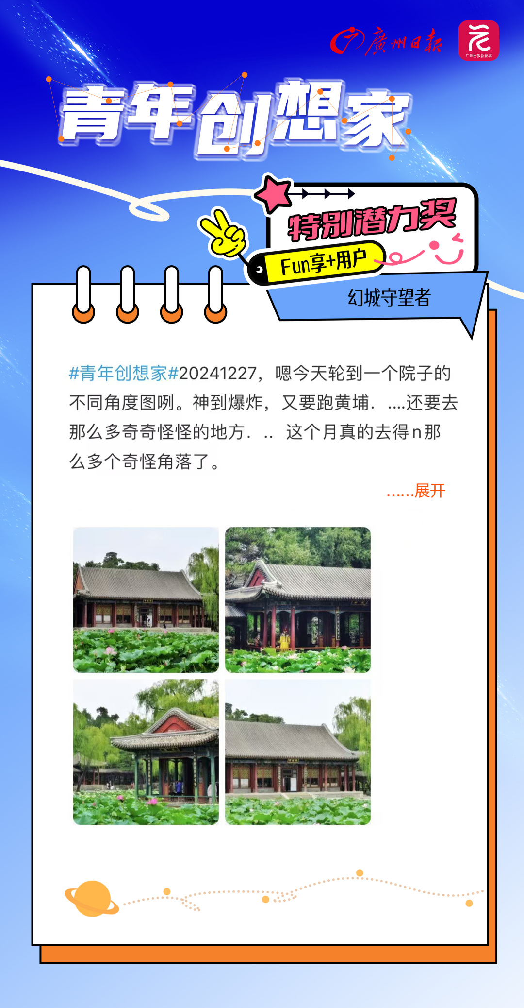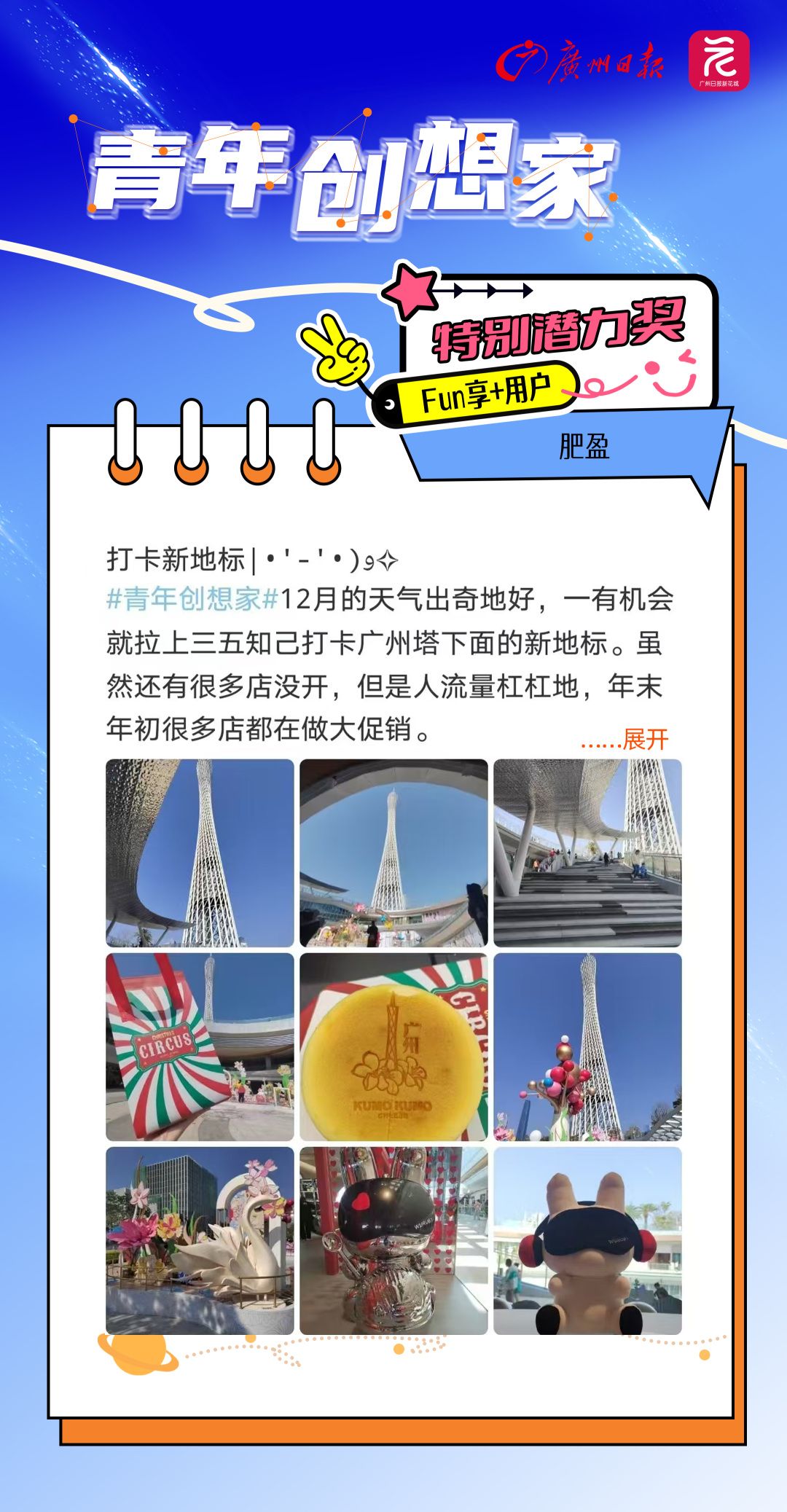 在这个充满无限可能与梦想的季节里,广州日报新花城客户端携手每一位怀揣热忱与创意的“Fun享家”,共同绘制了一幅幅色彩斑斓的青春画卷。自“青年创想家”创作者激励计划启动以来,我们见证了无数灵感火花的碰撞,今天,正式揭晓12月的获奖名单。