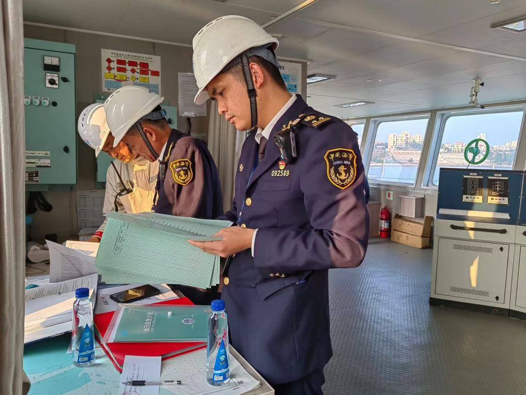 当日下午,在海巡“09027”轮的护航下,“绿源二号”安全靠泊海安新港。湛江徐闻海事处执法人员登轮对其开展了一轮全面细致的安全检查,重点检查了船舶法定证书文书,消防救生、无线电通信以及导航助航设备的维护保养,关注关键设备的操作与演习记录,公司管理体系对新能源专用运输船在车辆装卸以及日常运营生产管理方面的特殊要求。执法人员根据现场安检发现的缺陷开具安检报告,向船长提出了整改建议,并指导督促船方按时、按要求整改,确保船舶适航、船员适任,“不带病”投入春运。