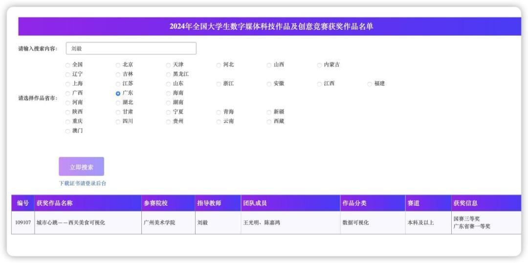 2023年5月以来,荔湾区市场监管局依托“西关美食品质提升行动”,与广州美术学院紧密合作,共同设计了“西关美食”系列标识和吉祥物“慧食猫”形象。在此过程中,荔湾区市场监管局充分发挥职能优势,结合区重点工作,为广州美院提供了丰富的实践经验,助力学生理论与实践相结合。2024年11月,由刘毅教授带领的学生团队(成员:王光明、陈嘉鸿)创作的“品味西关”系列作品《城市心跳——西关美食可视化》在“2024年全国大学生数字媒体科技作品及创意竞赛”中荣获国赛三等奖、广东省赛一等奖,受到了广泛关注,进一步提升了“品味西关”的品牌影响力。