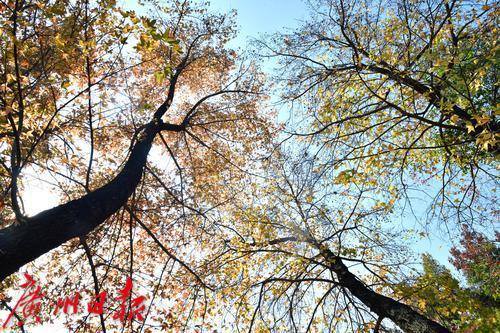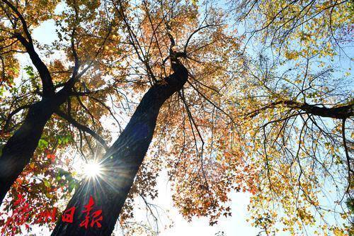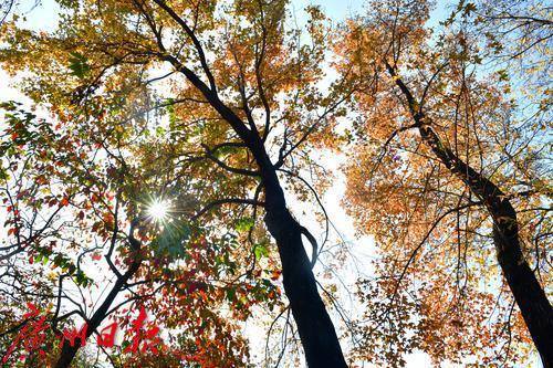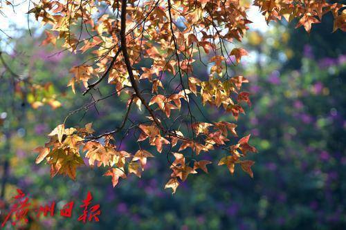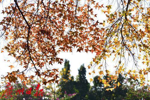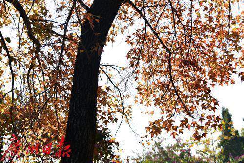 天河公园的红枫和乌桕近期在社交平台上火了起来,靠近公园东北门的路边,几棵红枫和乌桕矗立挺拔,繁茂的叶子火红一片热烈似火,与周边的绿植对比明显,风吹过,叶子窸窸窣窣响起,可见不少红叶随风飘落。