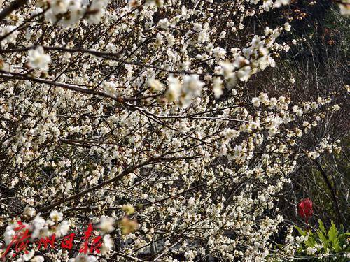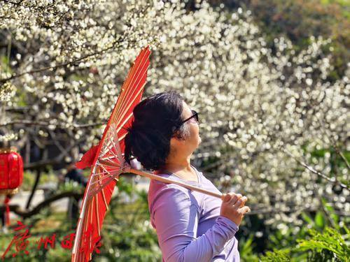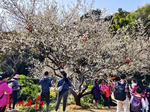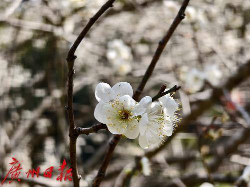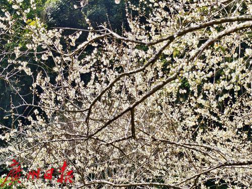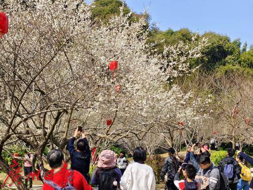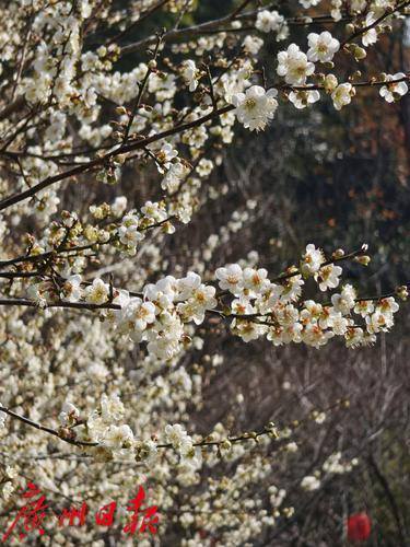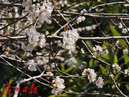 山谷飘香,游客云集。近日,白云山梅花谷的梅花开始盛放,吸引不少市民前来赏花打卡。梅花谷是广州市内一个著名的赏梅地点,位于白云山明珠楼游览区黄婆洞水库北侧,占地约5万平方米。这里种植了近千株梅花,包括宫粉梅、果梅、绿萼梅、玉蝶梅、美人梅等多个品种。每年1月至2月初,梅花谷内的梅花竞相开放,吸引了大量游客前来观赏。