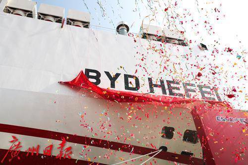 2025年1月7日,中国船舶广船国际为比亚迪建造的7000车双燃料汽车运输船1号船“BYD HEFEI”号完工交付。
