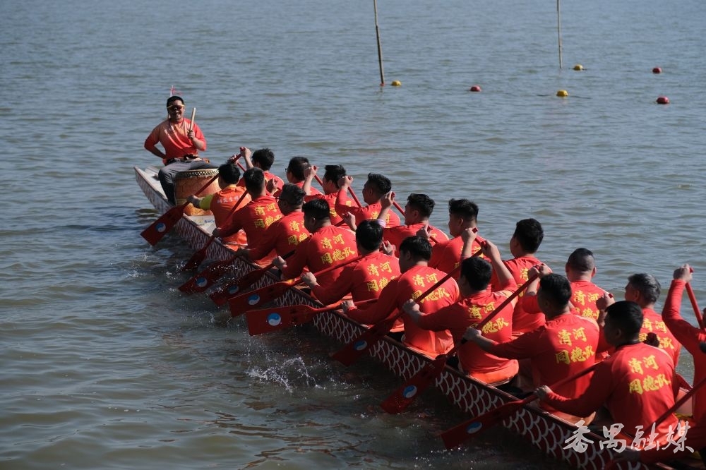 当天赛场上,毬山清河和谐队队长兼鼓手张展学在龙舟上稳坐如钟,他紧握鼓槌,有节奏地敲击着鼓面,发出阵阵激昂鼓声。他表示,鼓手要根据比赛的实际情况,灵活调整鼓点的节奏和强度,或激励队员加快划桨频率,或帮助队员保持节奏和力量,以取得更好的比赛成绩,“现在扒龙船的都以年轻人为主,我们希望将‘清河’的精神一直传承下去,所以一直坚持训练,大家的热情、体能和整个氛围都在不断提升。”