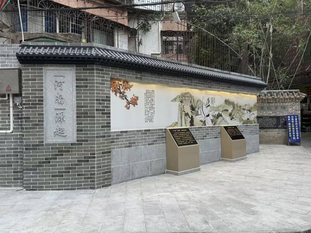 广州市海珠区赤岗街下渡村,是东汉大学者杨孚的故里。最近,市民发现,杨孚故里变靓了!走进下渡东约大街,映入眼帘的便是富有古韵的文化墙,以竹简形态钢材为载体。杨孚在为官清明,善于体察民情,深得百姓拥戴,其故宅后花园的水井(相传为“杨孚井”)于2002年7月被公布为广州市文物保护单位。