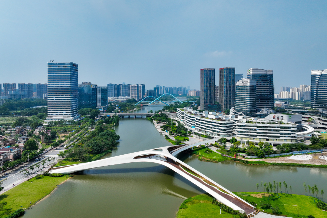 五座人行桥共同搭建起慢行系统,对蕉门河中心桥区段公共空间景观进行提升,放大南沙生态优势,将水清岸绿的生态底色和蓬勃发展的城市建设完美结合,不仅方便了人行过街,也为有休闲健身、跨河需要的人群提供良好的绿美环境,南沙“城市客厅”的功能越发凸显。