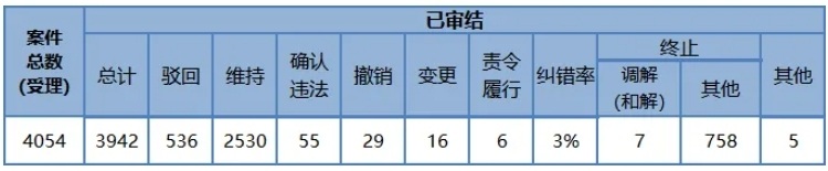 佛山全市受理行政复议案件办结情况