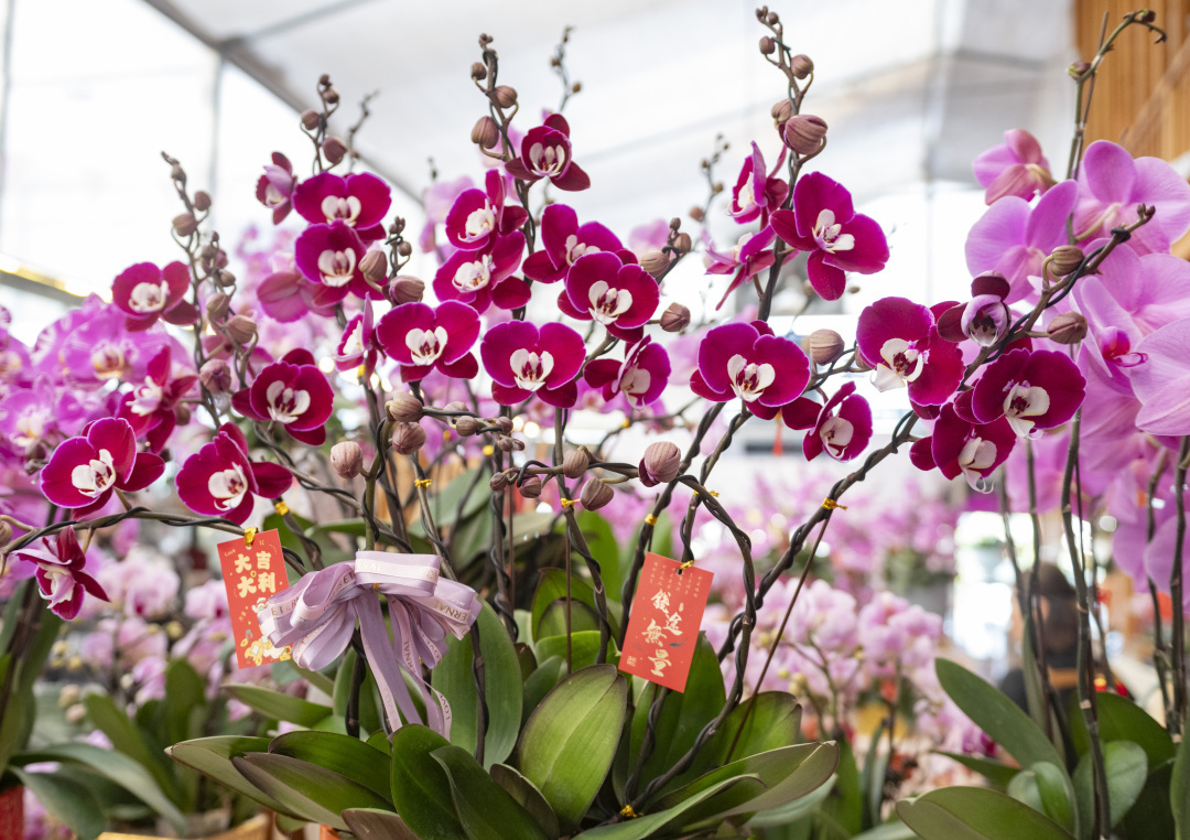 店里的蝴蝶兰十分吸引眼球,它们的花朵形状独特,色彩缤纷。黄先生表示,蝴蝶兰不仅外观美丽,而且花期较长,是市民们喜爱的年宵花之一。“蝴蝶兰里卖得最好的是‘大辣椒’,因为花是深红色的,很喜庆,寓意也很好。”黄先生说,“不过现在也有很多年轻人喜欢买颜色淡雅一点的,不同年龄段喜好会不一样。”