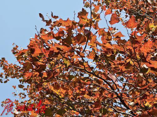阳光下,枫叶变得更加红彤彤。