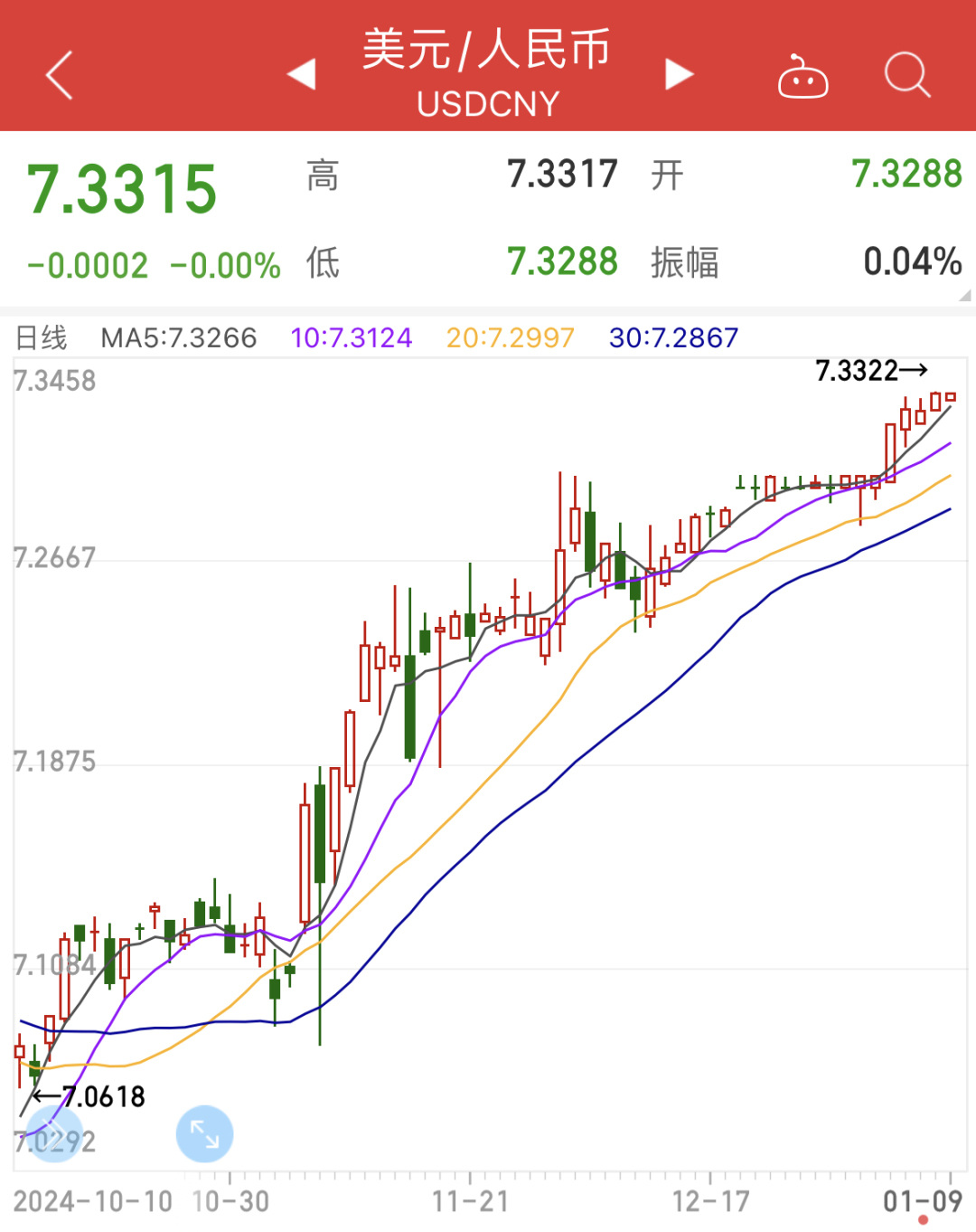 据悉,目前境内个人每人每年享有等值5万美元的便利化购汇额度。那么,当前是否是兑换美元的好时机呢?1月9日,在岸人民币对美元在7.33附近波动,与去年9月下旬的人民币对美元汇率7.00相比,记者简单测算,现在换汇5万美元,将多花人民币1.65万元。