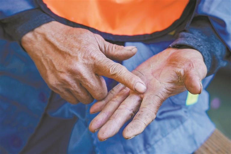 负责河涌保洁以来,谢全的脸和手臂都被晒黑了很多,手掌也因为长时间握着竹竿而起茧。“我每天工作到傍晚,沿着河涌来来回回,看着河涌清洁干净,就不觉得累。”虽然担任水上环卫保洁员仅两年,但谢全已经从心里爱上这份工作,也感受到身上的责任,“我只有全力做好工作,才能让大家欣赏到河涌最美的一面。”