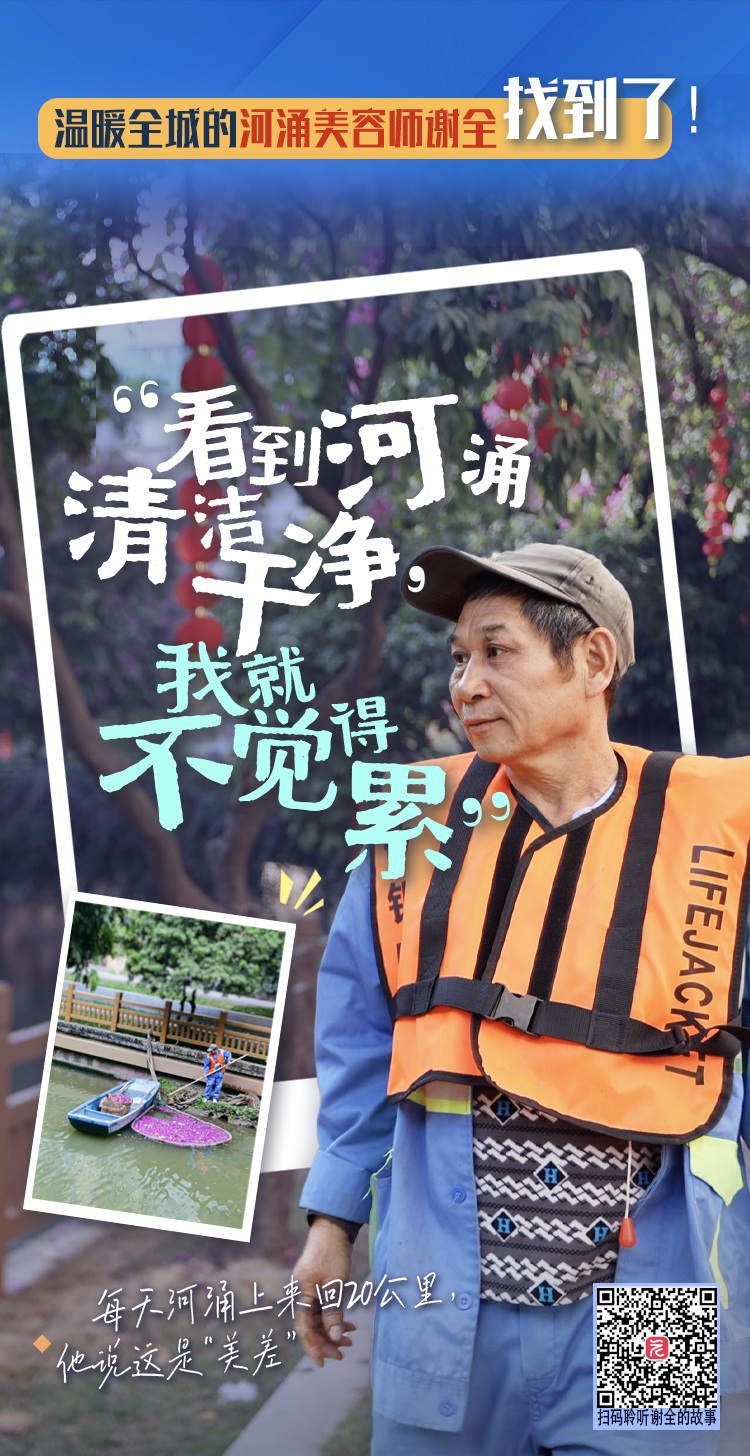 ——他就是城市的“凡人英雄”,河涌美容师谢全。