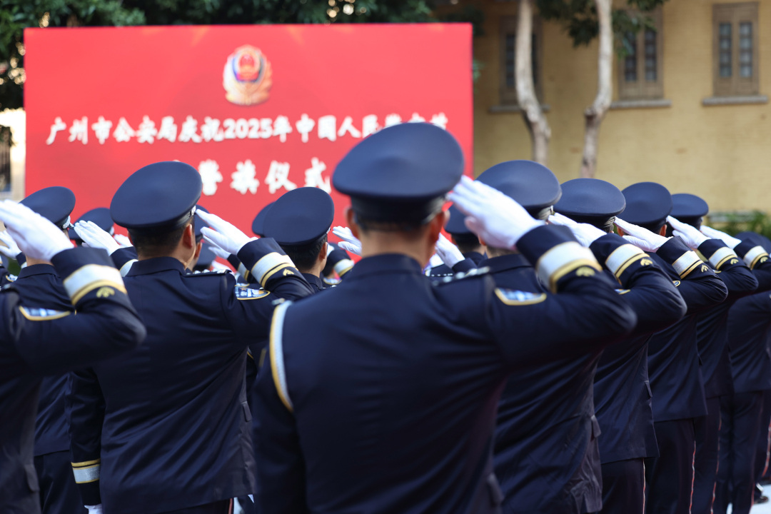 为热烈庆祝2025年第五个中国人民警察节,1月10日上午,广州市公安局隆重举行升警旗仪式。全市11个区公安分局也于当日举行升警旗仪式。