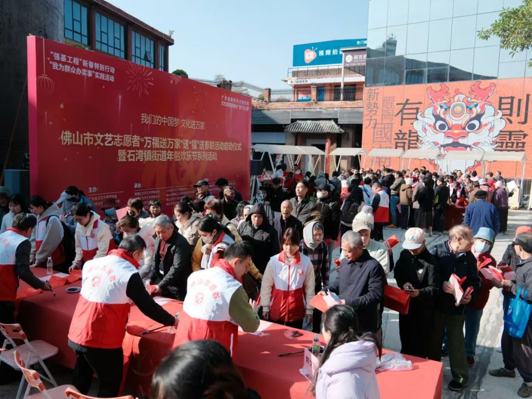1月10日,“我们的中国梦·文化进万家”佛山市文艺志愿者“万福送万家”送“福”送春联活动启动仪式暨石湾镇街道年俗欢乐节系列活动在禅城石湾公园铁桶先锋广场举办。10 位国家级、省级书法家挥毫为市民送祝福。